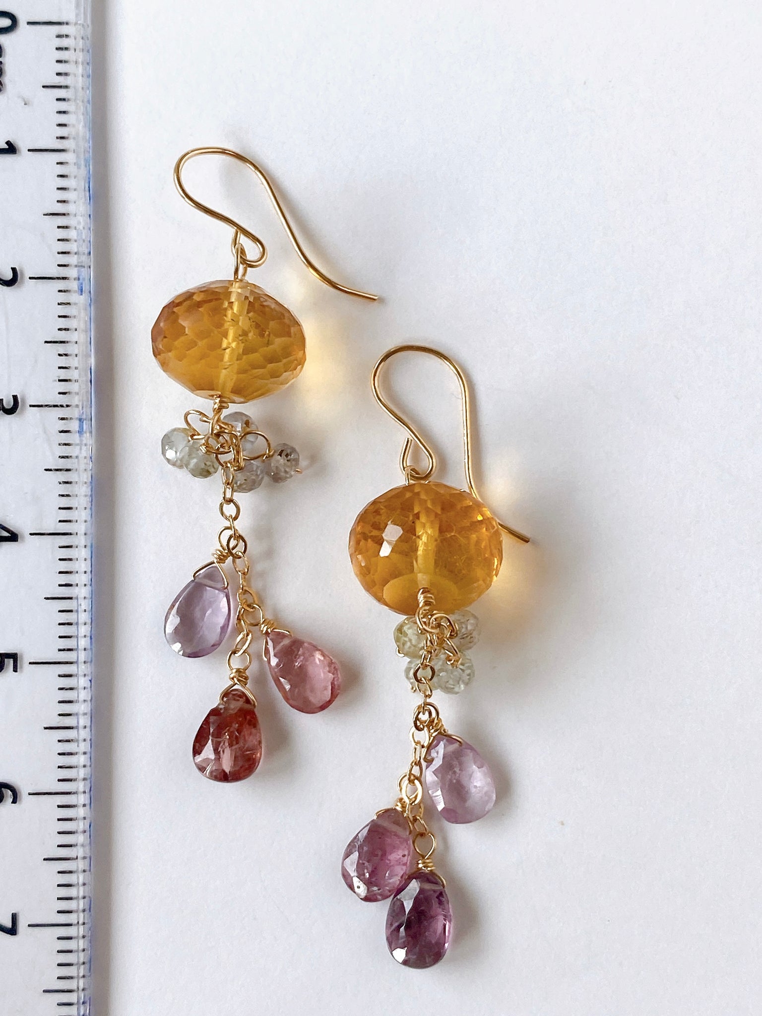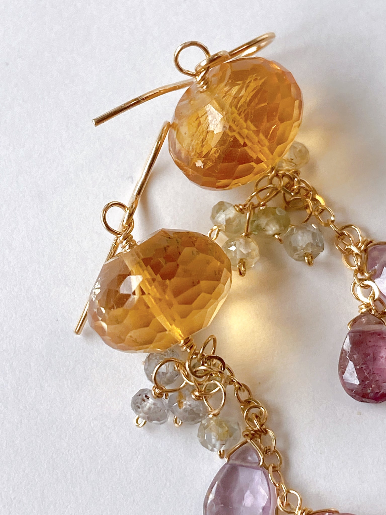 大粒シトリンとスピネルとグリーンサファイアのピアス