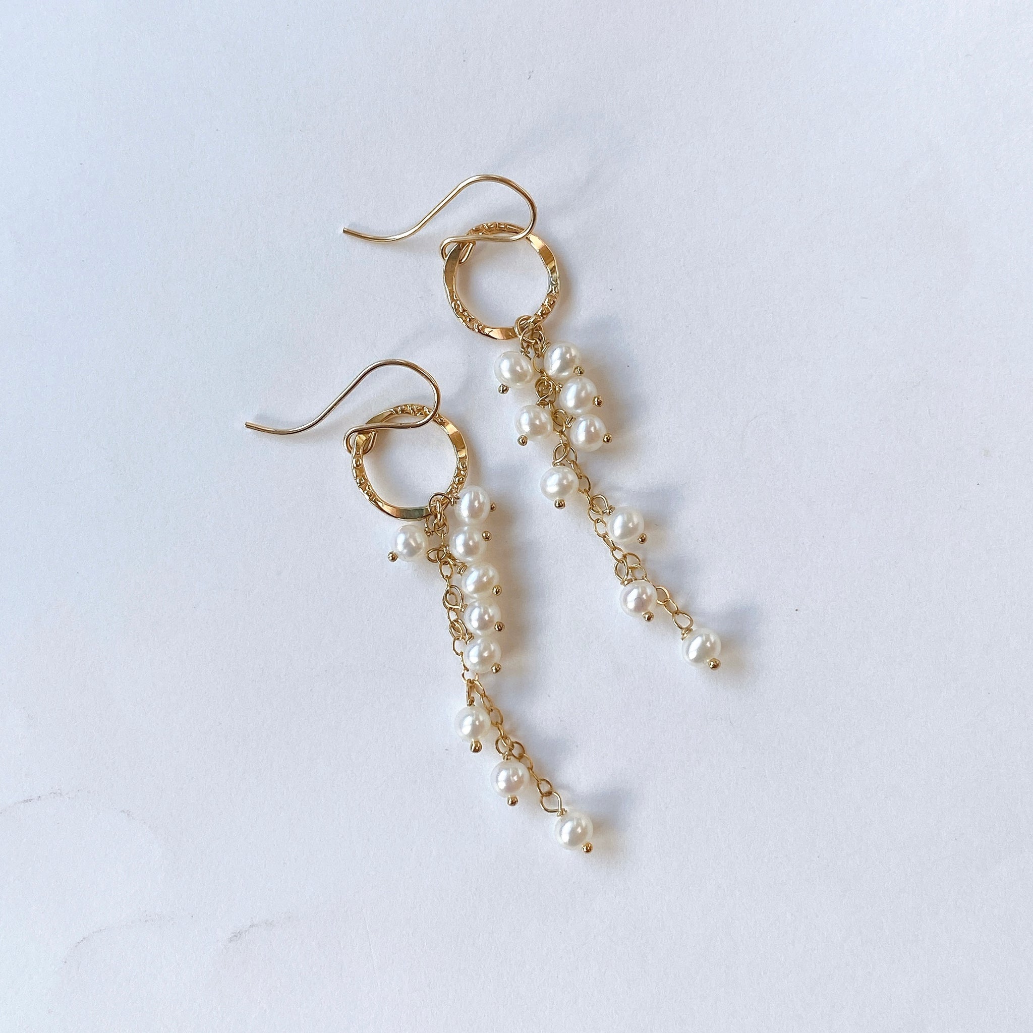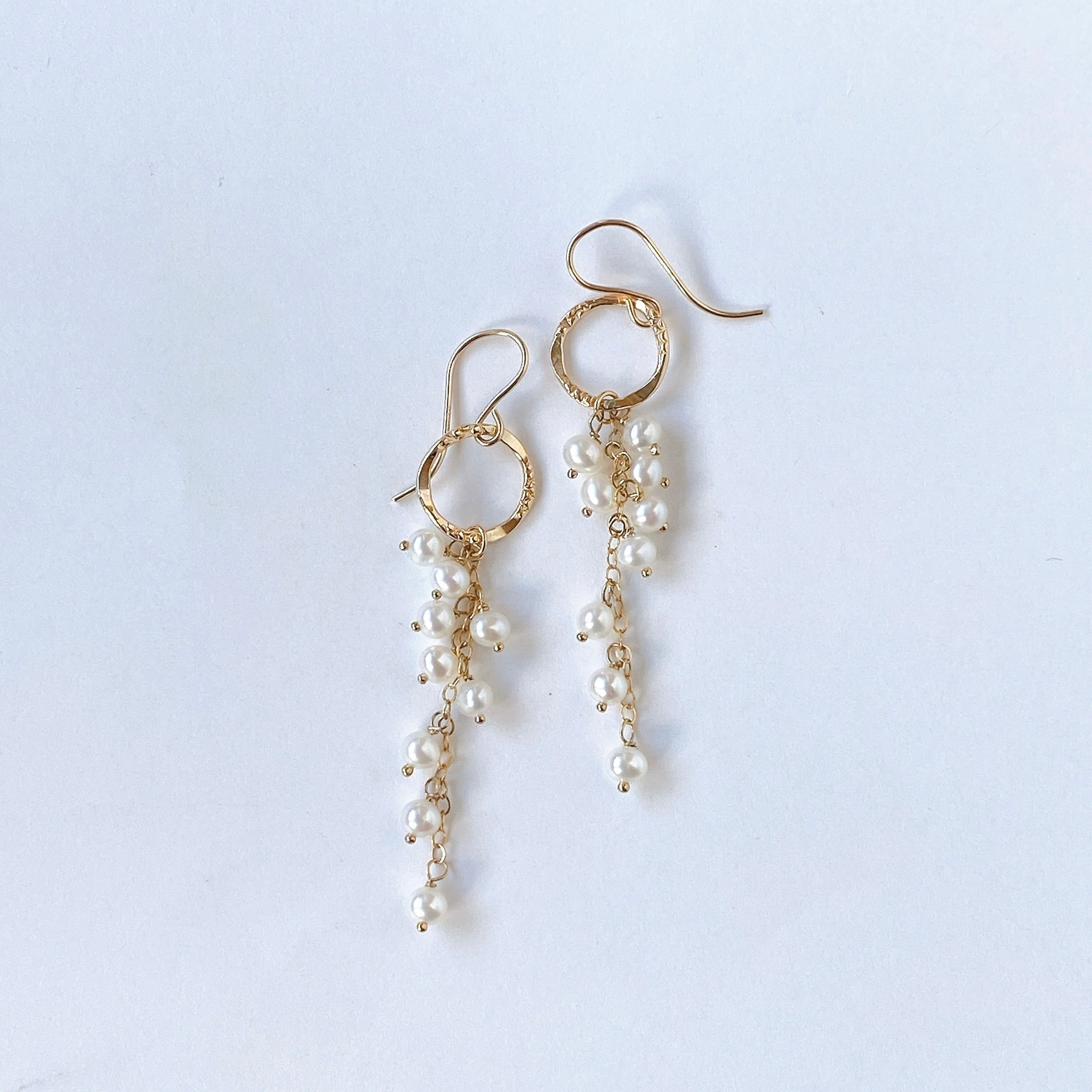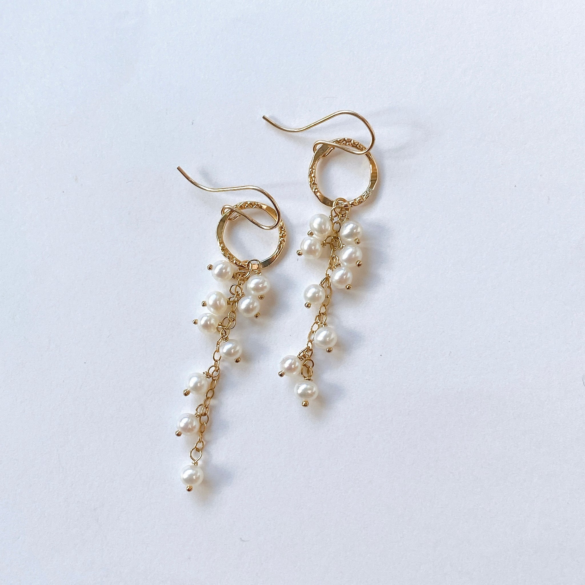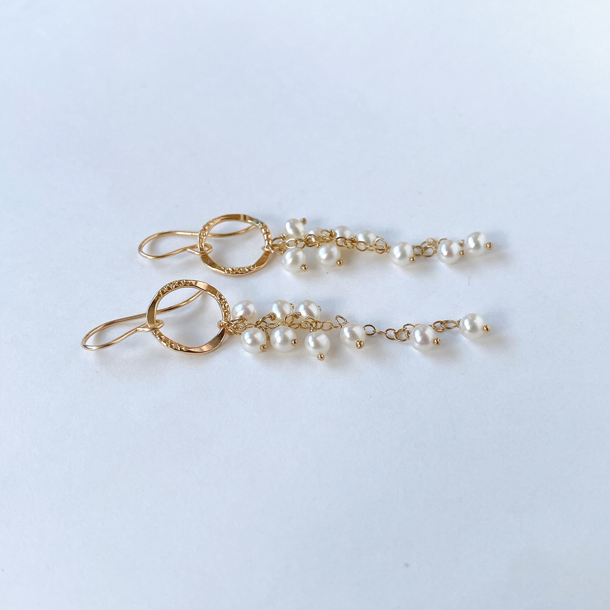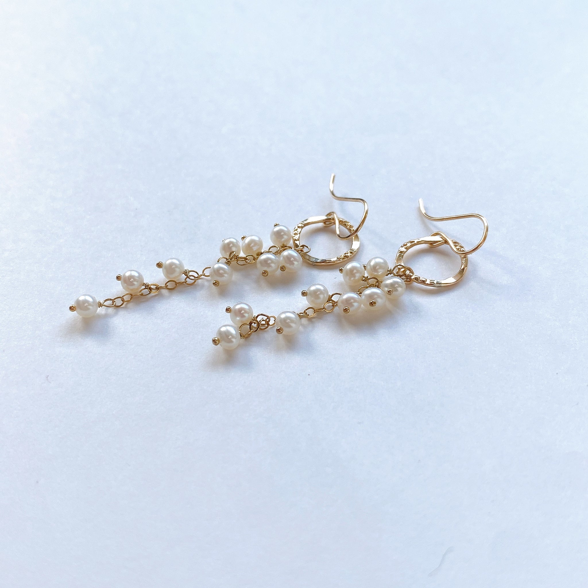 小さな淡水パールを使ってデザインした耳飾りです。